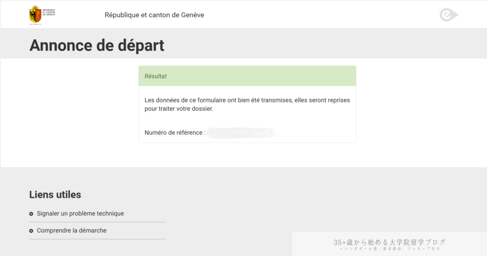 あわせて、Numéro de référence(受付番号)が付与されます。