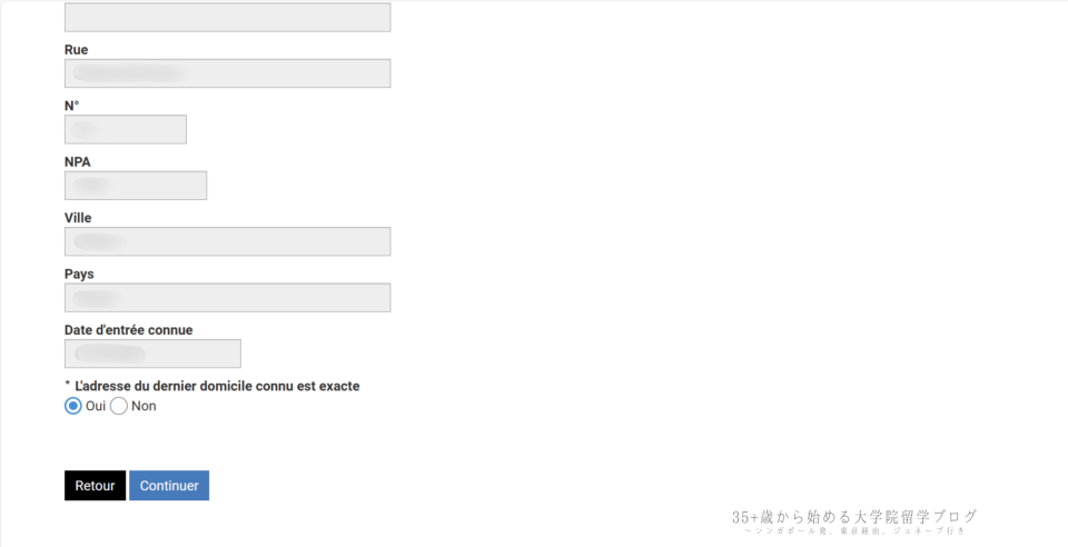 - L’adresse du dernier domicile connu est exacte(最後の住所は正しいか) → Oui / Non を選択