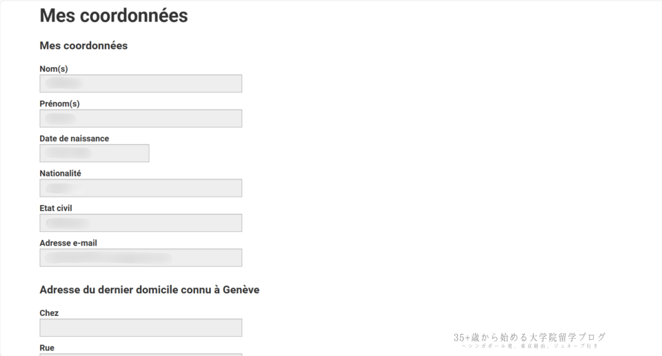 続いて「Adresse du dernier domicile connu à Genève(ジュネーヴでの最後の住所)」を入力します。