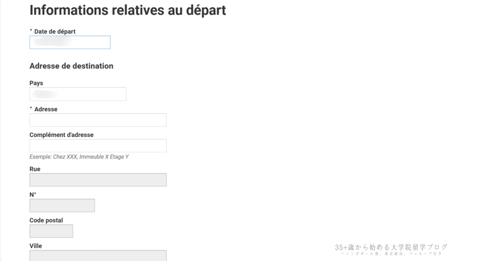→ 出国予定日またはジュネーヴを離れる日を入力します。 - Adresse de destination(転出先住所)