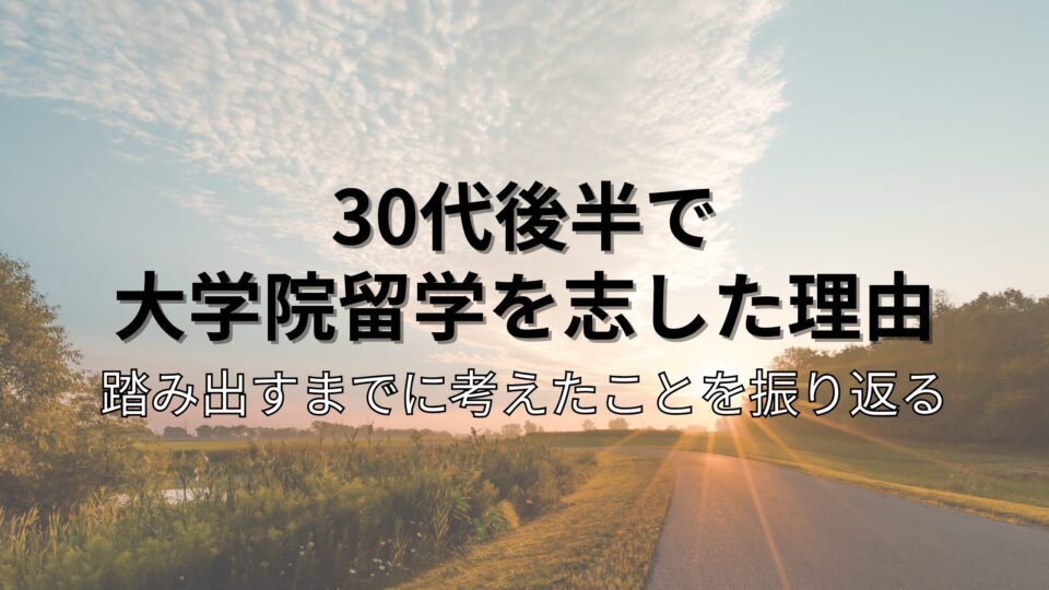 これまでも折に触れてこれまでの振り返りを行っていますが、この記事では、改めて留学を決意するまでの葛藤とそこから導き出した小さな気づきについて、今の私の視点から率直に綴りたいと思います。