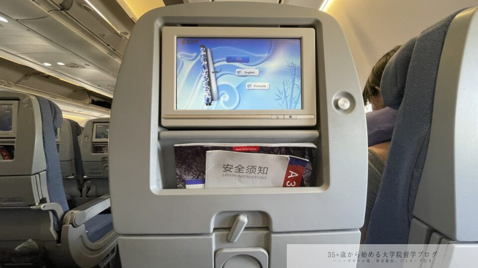 前回の短距離便ではシートテレビはありませんでしたが、今回はちゃんと各座席にシートテレビがあります。