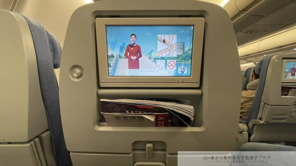 それ以外は長距離路線と同じく、中国語と英語に対応(アナウンスも中国語と英語)。日本行きでしたが日本語対応はしていなかったように思います。