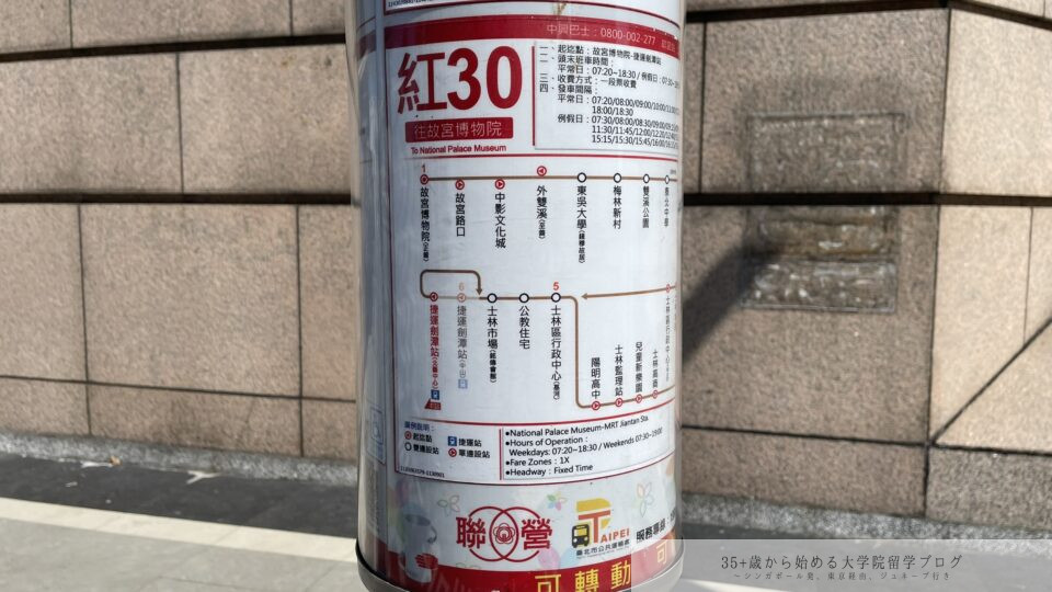 ここから紅30に乗れば国立故宮博物院のB1入り口に直接アクセスできます。