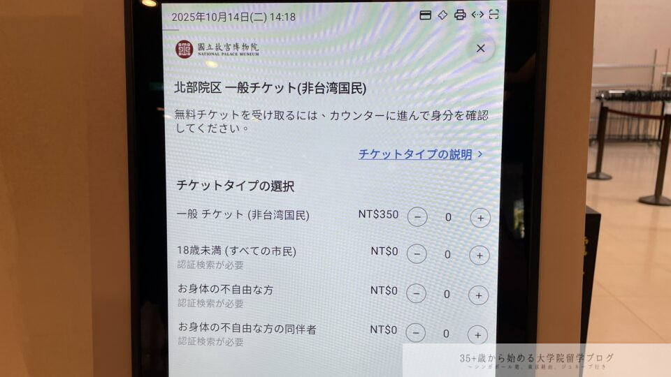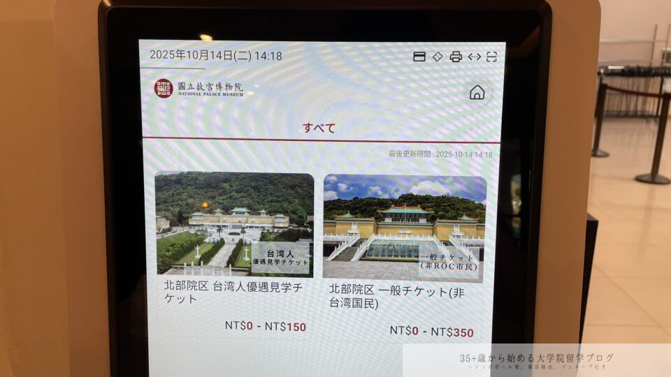 入館料は外国人観光客は350台湾ドル(団体は320台湾ドル)。18歳未満は国籍を問わず無料です。