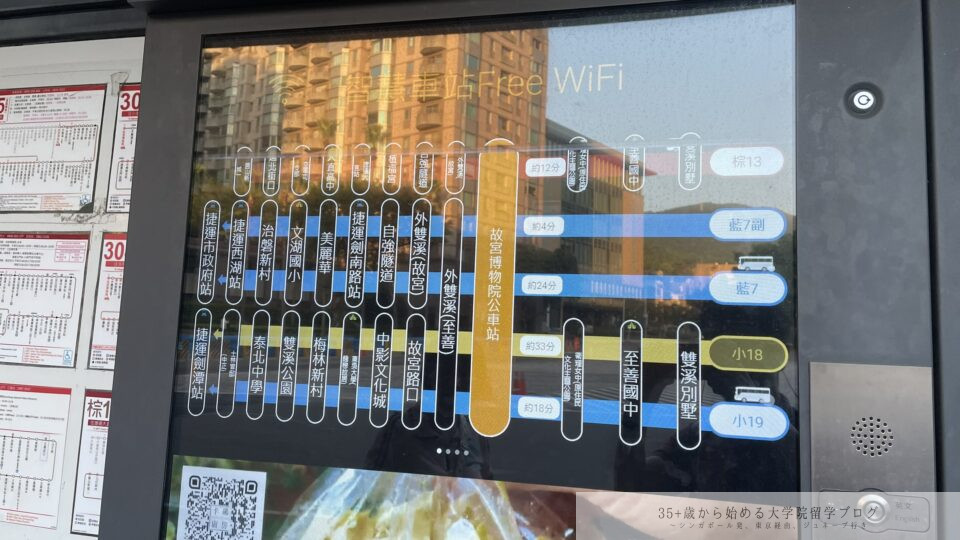 バス停の表示はこんな感じ。国立故宮博物院は途中駅なので乗り過ごさないように注意!