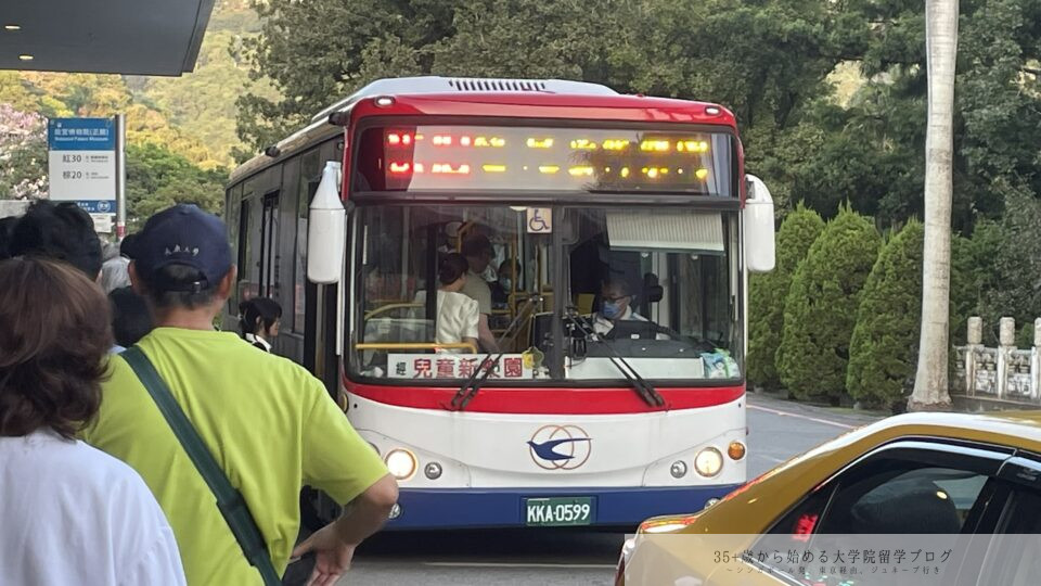 画像ではちょっと分かりづらいですが、該当のバスには前面に日本語や韓国語などで「故宮博物院行き」と書かれています。非常に明快ですね。