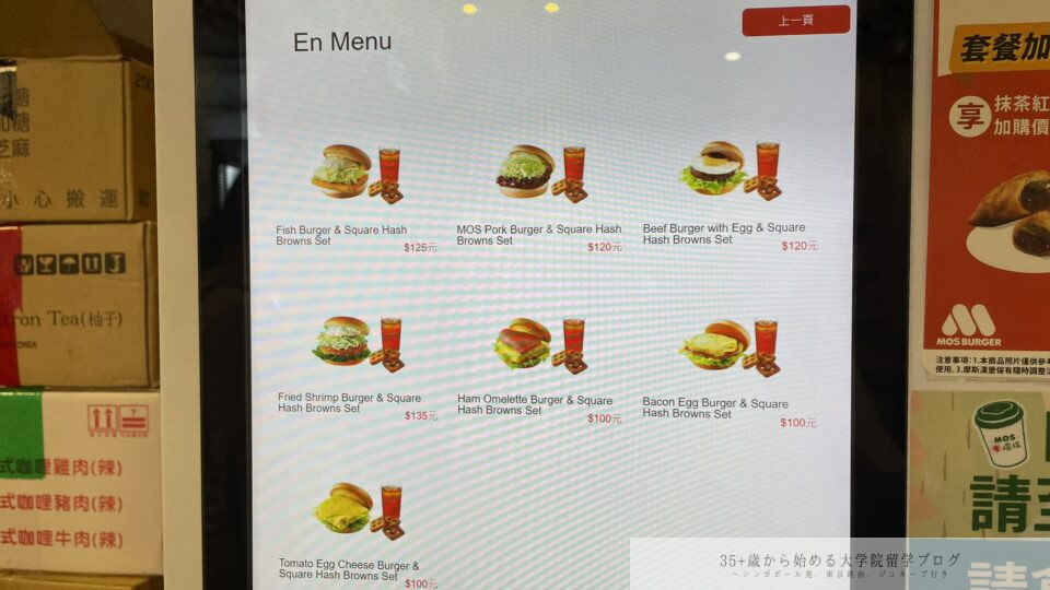 おそらく「モスをあまり知らない外国人向け」にメニューを簡略化しているのだと思うのですが、台湾モスの本領を知りたいなら英語モードは使わない方が良いです。