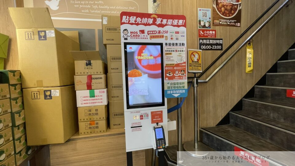 マクドナルドではよく見かける形式ですが、海外ではモスバーガーもこんな感じなんですね…。
