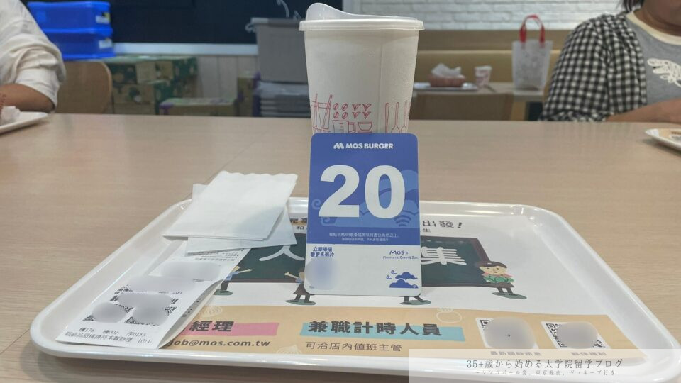 日本のモスバーガーは注文すると番号札を渡されて店員さんが持ってきてくれますが、台湾は全く違います!