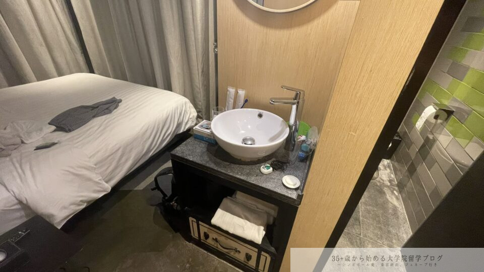 洗面スペースはベッドの横に独立(やや使いづらさあり)