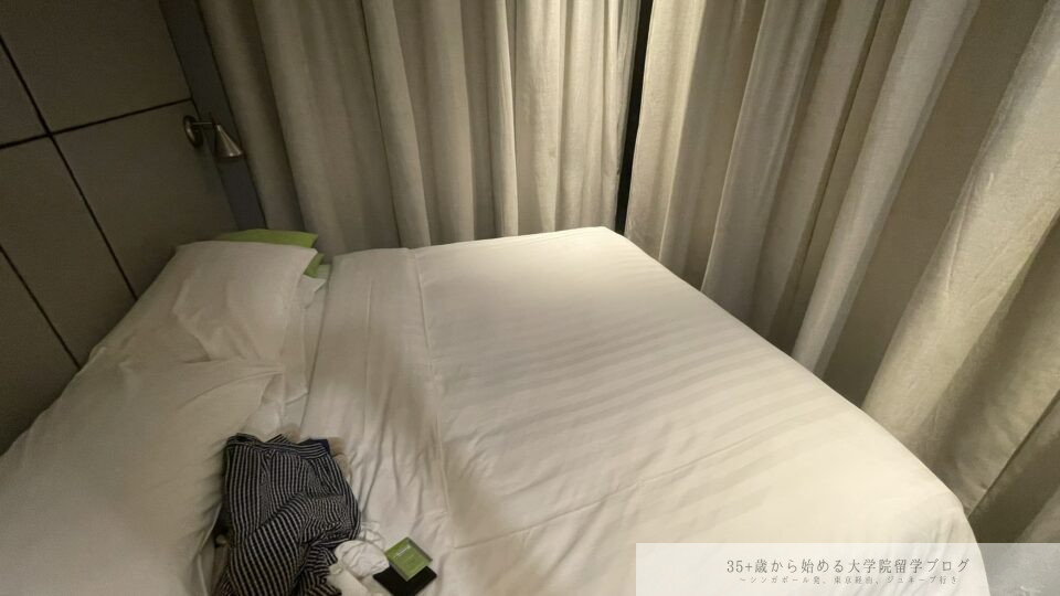 ベッド自体は十分に広くて寝心地も悪くなかったのですが、部屋の面積がほぼベッドで占領される構造のため、スーツケースを広げるスペースにはやや苦労しました。