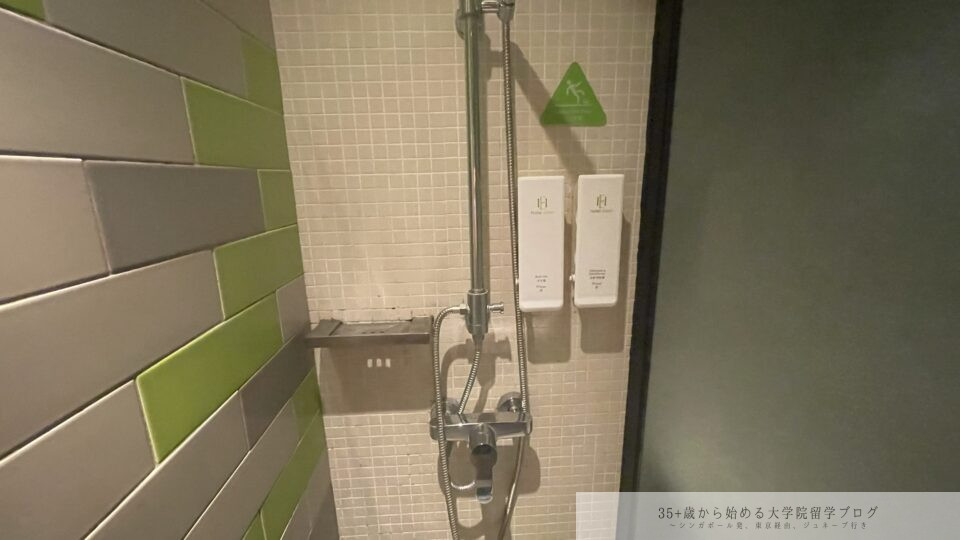シャワールーム自体は広くありませんが、床の水はけも良く、シャワーの水圧も問題ありませんでした。